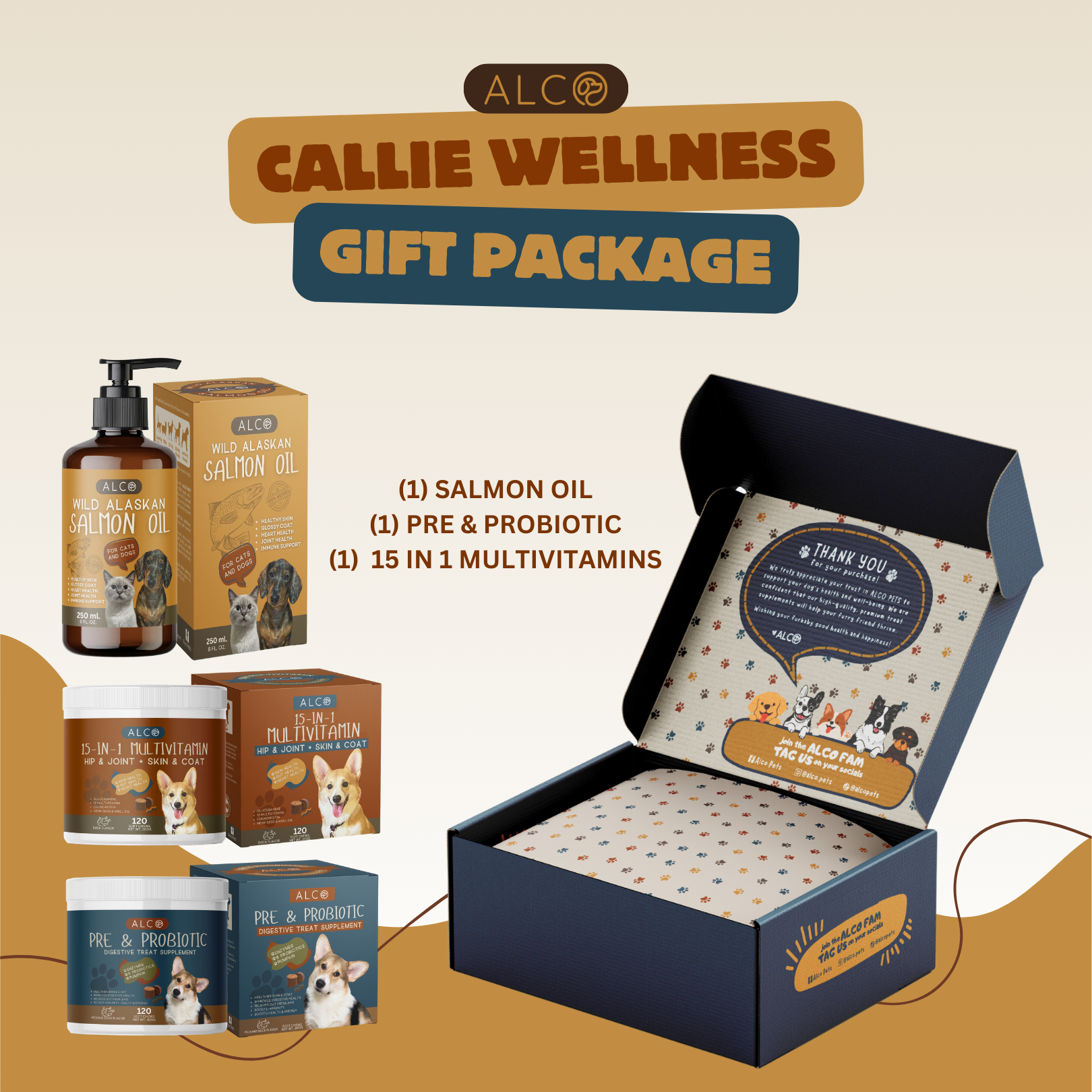 Treat your beloved pets to the gift of health and happiness with Alco Callie Wellness Gift Package! This thoughtfully curated package includes: