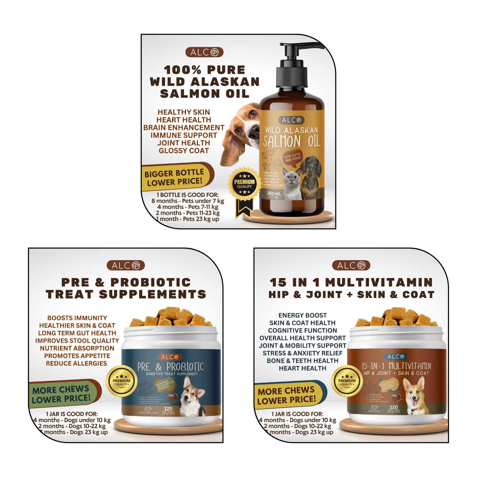- Wild Alaskan Salmon Oil – Packed with omega-3 fatty acids to support a shiny coat, healthy skin, and overall well-being.