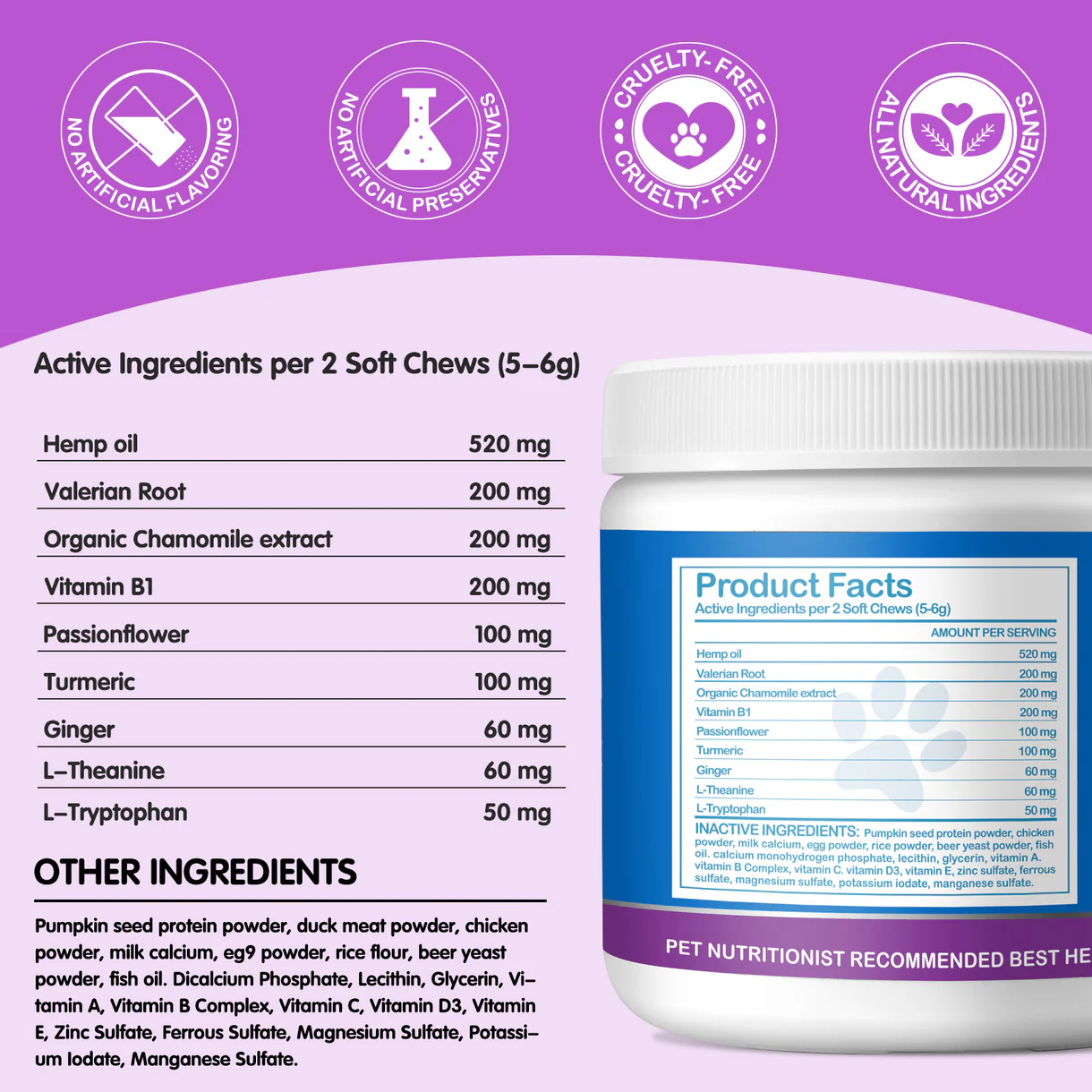 Worafy Hemp Calming Chews (300g, 120 pcs)